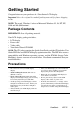 Contents Product Registration..............................................................2 For Your Records ..................................................................2 Getting Started Package Contents .................................................................3 Precautions ...........................................................................3 Quick Installation ...................................................................4 Installation of Wall Mount (Optional) ..................