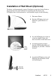 Quick Installation Optional: For instructions on wall mounting, see page 5 of this user guide. 1 Connect power cord 2 Connect video cable Make sure both the LCD display and computer are turned OFF Connect the video cable from the LCD display to the computer Macintosh users: Models older than G3 require a Macintosh adapter. Attach the adapter to the computer and plug the video cable into the adapter. To order a ViewSonic Macintosh adapter , contact ViewSonic Customer Support.