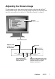 Control i Explanation Information displays the timing mode (video signal input) coming from the graphics card in your computer. See your graphic card’s user guide for instructions on changing the resolution and refresh rate (vertical frequency). VESA 1280 x 1024 @ 60 Hz (recommended) means that the resolution is 1280 x 1024 and the refresh rate is 60 Hertz. Manual Image Adjust The Manual Image Adjust controls are explained below: H./V.