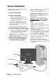Quick Installation Optional: For instructions on wall mounting, see page 6 of this user guide. 1 Connect power cord 2 Connect video cable • Make sure both the LCD display and computer are turned OFF • Connect the video cable from the LCD display to the computer Macintosh users: Models older than G3 require a Macintosh adapter. Attach the adapter to the computer and plug the video cable into the adapter. To order a ViewSonic® Macintosh adapter, contact ViewSonic Customer Support.