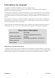 Informations de Conformité Déclaration de la FCC Cet appareil est conforme à l’Article 15 des Réglementations de la FCC. Son opération est sujette aux deux conditions suivantes: (1) cet appareil ne doit pas provoquer d’interférence néfaste et (2) cet appareil doit accepter toute interférence reçue, y compris une interférence pouvant causer une opération indésirable.