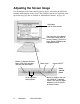 Do the following to adjust the screen image: 1 To display the Main Menu, press button [1]. NOTE: All OnView menus and adjustment screens disappear automatically after about 15 seconds. This time period is adjustable through the Setup menu and the OSD timeout control described on page 13. 2 3 4 5 To highlight a control you want to adjust, press ▲ or ▼ to scroll up or down the Main Menu. To select the highlighted control, press button [2].