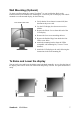 Wall Mounting (Optional) To obtain a wall-mounting kit, contact ViewSonic® or your local dealer. Refer to the instructions that come with the base mounting kit. To convert your LCD display from a deskmounted to a wall-mounted display, do the following: Four VESA screw holes 1. Verify that the Power button is turned Off, then disconnect the power cord. 2. Lay the LCD display face down on a towel or blanket. 3. Remove the Plastic Covers from the back of the LCD display. 4.