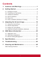 Contents 1. Cautions and Warnings...................................... 1 2. Getting Started.................................................... 4 2-1. 2-2. 2-3. 2-4. 2-5. 2-6. Package Contents.............................................................. 5 The Exterior of the Monitor................................................. 6 Hardware Installation......................................................... 7 Quick Installation.............................................................. 14 Power On.