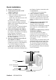 Quick Installation 1. Remove rear panel cover 2. Connect power cord (and AC/DC adapter if required) 3. Connect video cable • Make sure both the LCD display and computer are turned OFF. • Connect the video cable from the LCD display to the computer. Macintosh users: Models older than G3 require a Macintosh adapter. Attach the adapter to the computer and plug the video cable into the adapter. To order a ViewSonic® Macintosh adapter, contact ViewSonic Customer Support. 4.