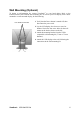 Wall Mounting (Optional) To obtain a wall-mounting kit, contact ViewSonic® or your local dealer. Refer to the instructions that come with the base mounting kit. To convert your LCD display from a deskmounted to a wall-mounted display, do the following: Four VESA screw holes 1. Verify that the Power button is turned Off, then disconnect the power cord. 2. Lay the LCD display face down on a towel or blanket. Notice the four screw holes for the wall mount on the back as shown on the left. 3.