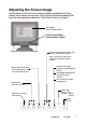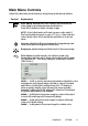 Adjusting the Screen Image Use the buttons on the front control panel to display and adjust the OnView® controls which display on the screen. The OnView controls are explained at the top of the next page and are defined in “Main Menu Controls” on page 9. Main Menu With OnView controls Front Control Panel shown below in detail Speaker Speaker Scrolls through menu options and adjusts the displayed control. Also a shortcut to display the Contrast adjustment control screen.