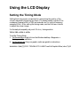 Using the LCD Display Setting the Timing Mode Setting the timing mode is important for maximizing the quality of the screen image and minimizing eye strain. The timing mode consists of the resolution (example 1024 x 768) and refresh rate (or vertical frequency; example 60 Hz). After setting the timing mode, use the OnView ® controls to adjust the screen image. For the best picture quality set your LCD dislay timing mode to: VESA 1280 x 1024 @ 60 Hz.