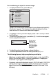 Control Explanation User — Individual adjustments for red, green, and blue. 1 2 3 i To select color (R, G or B) press button [2]. To adjust selected color, press I or J. When you are finished making all color adjustments, press button [1] twice. Information displays the timing mode (video signal input) coming from the graphics card in your computer. See your graphic card’s user guide for instructions on changing the resolution and refresh rate (vertical frequency).