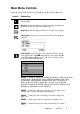 Adjusting the Screen Image Use the buttons on the front control panel to display and adjust the OnView® controls which display on the screen. The OnView controls are explained at the top of the next page and are defined in “Main Menu Controls” on page 9. Main Menu with OnView controls Front Control Panel shown below Speaker Speaker Scrolls through menu options and adjusts the displayed control. Also a shortcut to display the Contrast adjustment control screen.