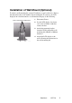 Installation of Wall Mount (Optional) To obtain a wall-mounting kit, contact ViewSonic or your local dealer. Refer to the instructions that come with the base mounting kit. To convert your LCD display from a desk-mounted to a wall-mounted display, do the following: Four screw holes for wall mount 1 Disconnect Power. 2 Lay the LCD display face down on a towel or blanket. And then remove the base. 3 Attach the mounting bracket from the VESA compatible wallmounting kit (100 mm x 100 mm distance).