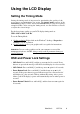 Cleaning the LCD Display • MAKE SURE THE LCD DISPLAY IS TURNED OFF. • NEVER SPRAY OR POUR ANY LIQUID DIRECTLY ONTO THE SCREEN OR CASE. To clean the screen: 1 2 Wipe the screen with a clean, soft, lint-free cloth. This removes dust and other particles. If still not clean, apply a small amount of non-ammonia, non-alcohol based glass cleaner onto a clean, soft, lint-free cloth, and wipe the screen. To clean the case: 1 2 Use a soft, dry cloth.