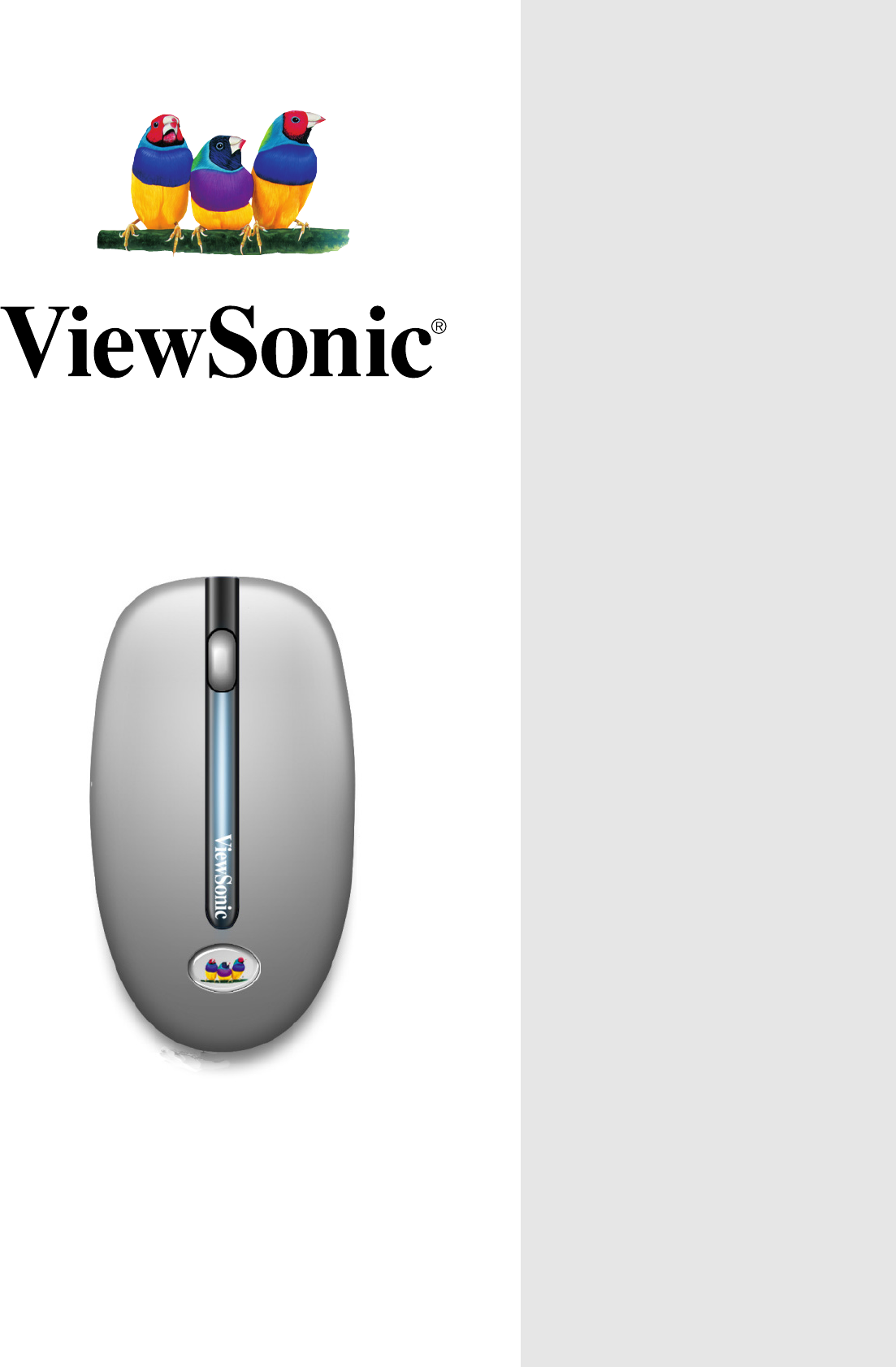 Getting Started Congratulations on purchasing a ViewSonic® ViewMate™ Optical Mouse. Important! Save the original box and all packing material for future shipping needs. Package Contents • USB optical mouse with PS/2 adapter • Mouse driver on CD Wizard with user guide Requirements • The mouse driver supports Microsoft® Windows 95/98/Me/2000/XP/. Windows NT4.0 or later. • The USB interface supports Microsoft Windows 98/Me/2000/XP. • Pentium 133 or higher PC (recommended).