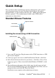 Quick Setup You can choose either standard mouse features shown below or the optional special program features for your ViewSonic Optical Mouse. For special program features, see the section on the next page, “Adding Special Program Features (optional)”. The standard mouse features with a USB or PS/2 connection are shown below. Standard Mouse Features Right-click button Scroll wheel Left-click button Installing the mouse using a USB Connection USB connection Mouse 1 Leave your PC turned on.
