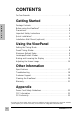 CONTENTS For Your Records . . . . . . . . . . . . . . . . . . . . . . . . . . . . . . . . . . . . . . . . . 1 Getting Started Package Contents . . . . . . . . . . . . . . . . . . . . . . . . . . . . . . . . . . . . . . . Before using the ViewPanel® . . . . . . . . . . . . . . . . . . . . . . . . . . . . . . Precautions . . . . . . . . . . . . . . . . . . . . . . . . . . . . . . . . . . . . . . . . . . . . . Important Safety Instructions . . . . . . . . . . . . . . . . . . . . . . . . . . . . .