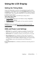 Using the LCD Display Setting the Timing Mode Setting the timing mode is important for maximizing the quality of the screen image and minimizing eye strain. The timing mode consists of the resolution (example 1600 x 1200) and refresh rate (or vertical frequency; example 60 Hz). After setting the timing mode, use the OnView ® controls to adjust the screen image. For the best picture quality set your LCD display timing mode to: VESA 1600 x 1200 @ 60Hz.