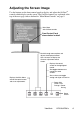Do the following to adjust the screen image: 1 To display the Main Menu, press button [1]. NOTE: All OnView menus and adjustment screens disappear automatically after about 30 seconds. 2 To select a control you want to adjust, press ▲ or ▼ to scroll up or down the Main Menu. 3 After the control is selected, press button [2]. 4 To adjust the control, press the up ▲ or down ▼ buttons. 5 To save the adjustments and exit the menu, press button [1] twice.