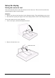 Setup the display Storing the connector tool This section describes how to store the connector tool for future use. This tool will be useful when disconnecting the cables from the display. Attention: 1. Remove any objects from the surface before tilting the display. They might damage your screen. 2. Be careful not to pinch your fingers between the display and the surface when tilting the display. To store the connector tool, do the following: 1. Clear a work space, and turn the display face down. 2.