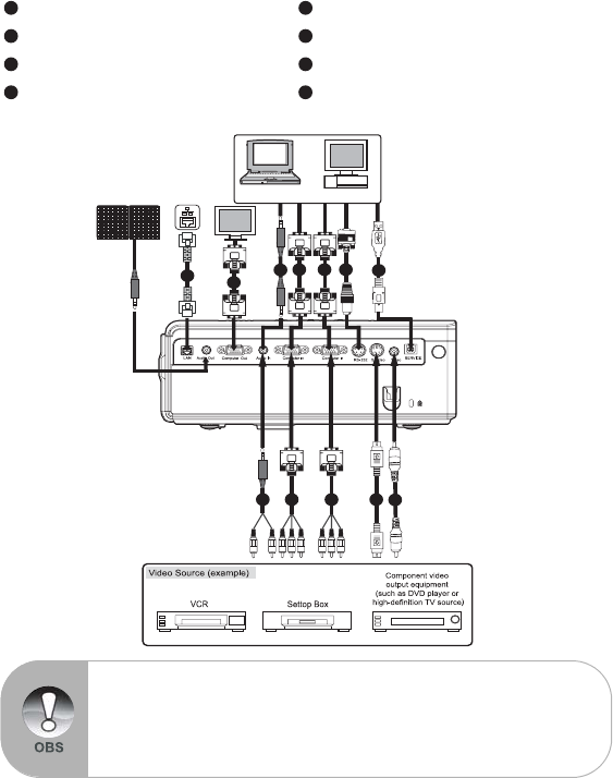 Kablarna som följer med projektorn kan skilja sig från dem i illustrationen