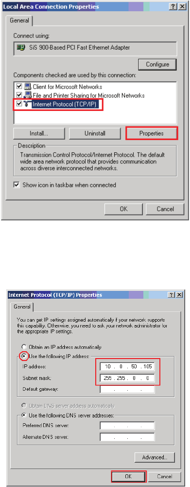2. Välj “Intel Protocol (TCP/IP)” och klicka på “Properties”.