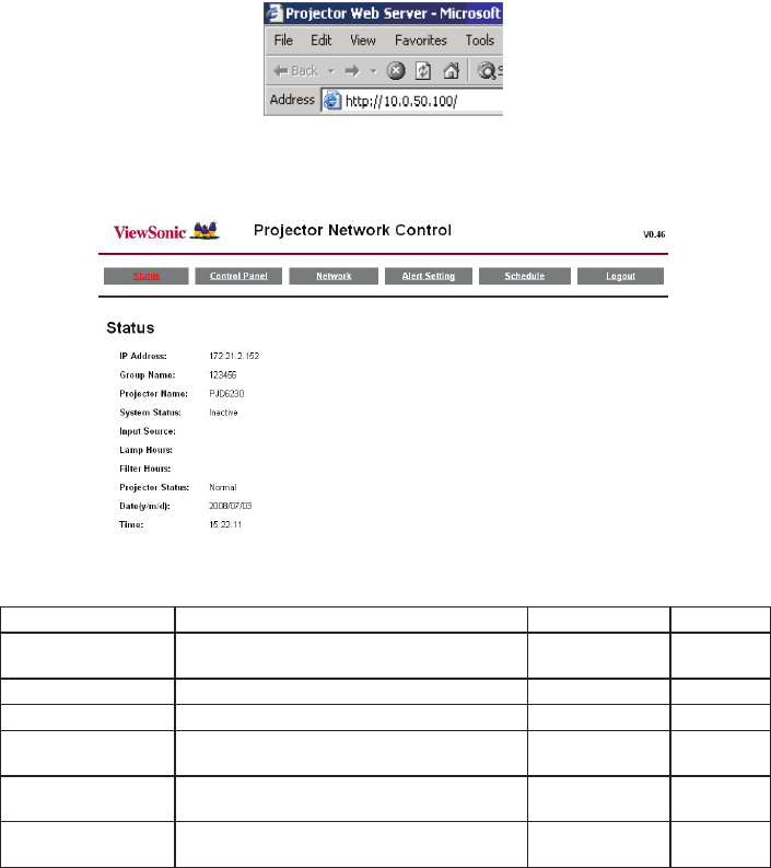 Control Panel Styrning av projektorn via nätverket.