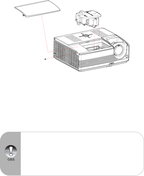 6. Sätt i en ny lampmodul i projektorn och dra till skruvarna.