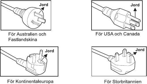 Kontrollera att nätsladdens kontaktdon stämmer överens med bilden nedan och att rätt