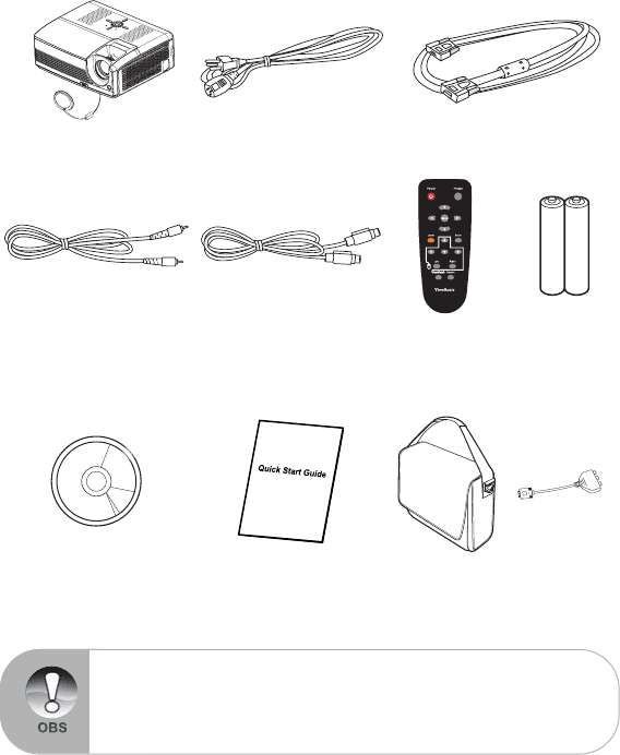 När du packar upp projektorn ska du kontrollera att följande komponenter finns med: