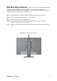 Wall Mounting (Optional) For use only with UL Listed Wall Mount Bracket To obtain a wall-mounting kit, contact ViewSonic® or your local dealer. Refer to the instructions that come with the base mounting kit. To convert your LCD display from a deskmounted to a wall-mounted display, do the following: Step 1. Verify that the power button is turned Off, then disconnect the power cord. Step 2. Lay the LCD display face down on a towel or blanket. Step 3. Remove the four screws attaching the base. Step 4.