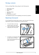Contenu de l’emballage Français Vérifiez que l’emballage de votre cadre photo numérique contient les éléments suivants. • Cadre photo numérique • Adaptateur d’alimentation • Support • Guide de démarrage rapide • Câble USB • Panneau de remplacement frontal* * La face avant fournie varie selon le modèle que vous avez acheté. Remplacer la face avant Si l’emballage de votre cadre photo numérique contient une face avant de rechange, suivez ces instructions pour remplacer la face avant à votre guise. 1. 2. 3.