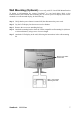 Wall Mounting (Optional) For use only with UL Listed Wall Mount Bracket To obtain a wall-mounting kit, contact ViewSonic® or your local dealer. Refer to the instructions that come with the base mounting kit. To convert your LCD display from a deskmounted to a wall-mounted display, do the following: Step 1. Verify that the power button is turned Off, then disconnect the power cord. Step 2. Lay the LCD display face down on a towel or blanket. Step 3. Remove the two screws attaching the base. Step 4.