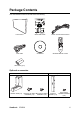 Package Contents Your new CD5230 monitor box should contain the following: LCD monitor Quick Start Guide Power cord for North America VGA cable CD Wizard Wireless Remote Control AAA battery (x 2) Optional accessories Stand Monitor stand (x 2) ViewSonic M6 screw for stand M4 screw for stand installation (x 2) installation (x 8) CD5230 Speaker External speaker (x 2) M3 screw for speaker installation (x 6) 6