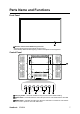 Parts Name and Functions Front Panel 1 1 Remote control sensor/Ambient light sensor • Receives the signal from the wireless remote control. • Automatically detects ambient lighting condition and adjusts screen brightness. Control Panel 1 2 3 4 5 6 7 1 Carrying handle - Use these handles to carry the LCD monitor while installing. 2 INPUT button - Press this button to select an input source. Acts as SET button with OSD menu. 3 MENU button - Activates the OSD menu when the OSD menu is turned-off.