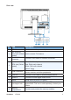 Rear view No. Item Description 1 DC-IN connector Use to connect the power adapter 2 PAL Antenna Connector (Select Use to connect TV Antenna. model) 3 RJ45 / LAN connector Connect a LAN cable for network connection. 4 RCA Jack (Select model) For audio/video input Red: Right audio channel White: Left audio channel Yellow: Video 5 USB connectors Connect USB devices such as a mouse, keyboard, printer, scanner, and other peripherals. 6 VGA-out Connect a VGA cable to external display device.