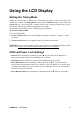 Cleaning the LCD Display • MAKE SURE THE LCD DISPLAY IS TURNED OFF. • NEVER SPRAY OR POUR ANY LIQUID DIRECTLY ONTO THE SCREEN OR CASE. To clean the screen: 1. Wipe the screen with a clean, soft, lint-free cloth. This removes dust and other particles. 2. If the screen still not clean, apply a small amount of non-ammonia, non-alcohol based glass cleaner onto a clean, soft, lint-free cloth, and wipe the screen. To clean the case: 1. Use a soft, dry cloth. 2.