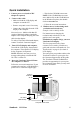 Quick Installation 1. Connect power cord (and AC/DC adapter if required) 2. Connect video cable • Make sure both the LCD display and computer are turned OFF • Remove rear panel covers if necessary • Connect the video cable from the LCD display to the computer Macintosh users: Models older than G3 require a Macintosh adapter. Attach the adapter to the computer and plug the video cable into the adapter. To order a ViewSonic® Macintosh adapter, contact ViewSonic Customer Support. 3.