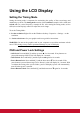 Using the LCD Display Setting the Timing Mode Setting the timing mode is important for maximizing the quality of the screen image and minimizing eye strain. The timing mode consists of the resolution (example 1920 x 1080) and refresh rate (or vertical frequency; example 60 Hz). After setting the timing mode, use the OSD (On-screen Display) controls to adjust the screen image. To set the Timing Mode: 1. Set the resolution: Right-click on the Windows desktop > Properties > Settings > set the resolution. 2.