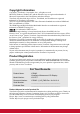 Copyright Information Copyright © ViewSonic® Corporation, 2011. All rights reserved. Microsoft, Windows, Windows NT, and the Windows logo are registered trademarks of Microsoft Corporation in the United States and other countries. ViewSonic, the three birds logo, OnView, ViewMatch, and ViewMeter are registered trademarks of ViewSonic Corporation. VESA is a registered trademark of the Video Electronics Standards Association. DPMS and DDC are trademarks of VESA.