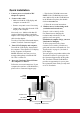 Quick Installation • Wait for the CD-ROM to auto-start. NOTE: If the CD-ROM does not autostart: double-click on the CD-ROM icon in the Windows Explorer, then doubleclick on viewsonic.exe. 1. Connect power cord (and AC/DC adapter if required) 2. Connect video cable • Make sure both the LCD display and computer are turned OFF • Follow the on-screen instructions. • Remove rear panel covers if necessary 5. Windows users: Set the timing mode (resolution and refresh rate) Example: 1920 x 1080 @ 60 Hz.