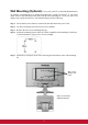 Wall Mounting (Optional) For use only with UL Listed Wall Mount Bracket To obtain a wall-mounting kit or height adjustment base, contact ViewSonic® or your local dealer. Refer to the instructions that come with the base mounting kit. To convert your LCD display from a desk-mounted to a wall-mounted display, do the following: Step 1. Verify that the power button is turned Off, then disconnect the power cord. Step 2. Lay the LCD display face down on a towel or blanket. Step 3.