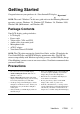 Contents Product Registration..............................................................2 For Your Records ..................................................................2 Getting Started Package Contents .................................................................3 Precautions ...........................................................................3 Quick Installation ...................................................................4 Installation of Wall Mount (Optional) ..................