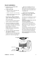 Quick Installation 1. Connect power cord (and AC/DC adapter if required) • Wait for the CD-ROM to auto-start. NOTE: If the CD-ROM does not autostart: double-click on the CD-ROM icon in the Windows Explorer, then double-click on viewsonic.exe. 2. Connect video cable • Make sure both the LCD display and computer are turned OFF • Remove rear panel covers if necessary • Connect the video cable from the LCD display to the computer Macintosh users: Models older than G3 require a Macintosh adapter.