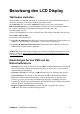 Reinigung des LCD Display • STELLEN SIE SICHER, DASS DER LCD DISPLAY AUSGESCHALTET IST. • SPRÜHEN ODER GIESSEN SIE NIE FLÜSSIGKEIT DIREKT AUF DEN BILDSCHIRM ODER DAS GEHÄUSE. So reinigen Sie den Bildschirm: 1. Wischen Sie den Bildschirm mit einem sauberen, weichen, fusselfreien Tuch ab. Dadurch werden Staub und andere Partikel entfernt. 2.