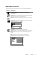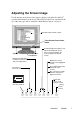 Adjusting the Screen Image Use the buttons on the front control panel to display and adjust the OnView® controls which display on the screen. The OnView controls are explained at the top of the next page and are defined in “Main Menu Controls” on page 9. Main Menu with OnView controls Front Control Panel shown below Scrolls through menu options and adjusts the displayed control.