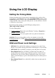 Using the LCD Display Setting the Timing Mode Setting the timing mode is important for maximizing the quality of the screen image and minimizing eye strain. The timing mode consists of the resolution (example 1600 x 1200) and refresh rate (or vertical frequency; example 60 Hz). After setting the timing mode, use the OnView ® controls to adjust the screen image. For the best picture quality set your LCD display timing mode to: VESA 1600 x 1200 @ 60 Hz.