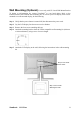 Wall Mounting (Optional) For use only with UL Listed Wall Mount Bracket To obtain a wall-mounting kit, contact ViewSonic® or your local dealer. Refer to the instructions that come with the base mounting kit. To convert your LCD display from a deskmounted to a wall-mounted display, do the following: Step 1. Verify that the power button is turned Off, then disconnect the power cord. Step 2. Lay the LCD display face down on a towel or blanket. Step 3. Remove the four screws attaching the base. Step 4.