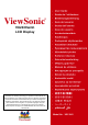 Getting Started Congratulations on your purchase of a ViewSonic® LCD display. Important! Save the original box and all packing material for future shipping needs. NOTE: The word “Windows” in this user guide refers to the following Microsoft operating systems: Windows ‘95, Windows NT, Windows ‘98, Windows 2000, Windows Me (Millennium), Windows XP, Windows Vista, and Windows 7.