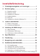 Innehållsförteckning 1. Försiktighetsåtgärder och varningar................. 1 2. Komma igång....................................................... 3 2-1. 2-2. 2-3. 2-4. 2-5. 2-6. Paketets innehåll................................................................ 4 Skärmens utsida................................................................ 5 Installation av hårdvara...................................................... 6 Snabbinstallation................................................................