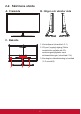2-2. Skärmens utsida A. Framsida B. Höger och vänster sida - C. Baksida 1. Kontrollpanel (utvecklad i 3-1) 2. I/O-port (ingång/utgång) Detta område bör omfatta alla I/Oanslutningsmöjligheter samt strömanslutningen (utvecklad i 2-4) 3.