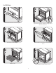 Installation 1 2 Remove wooden brace on front of pallet. 2 1 Open door completely. Rotate door hinge clip as shown in illustration. 3 4 Close the door until it stops. Push in/lift door up/and then out. Repeat for all doors. 5 6 Remove racks. Unscrew pallet screws from side of oven.